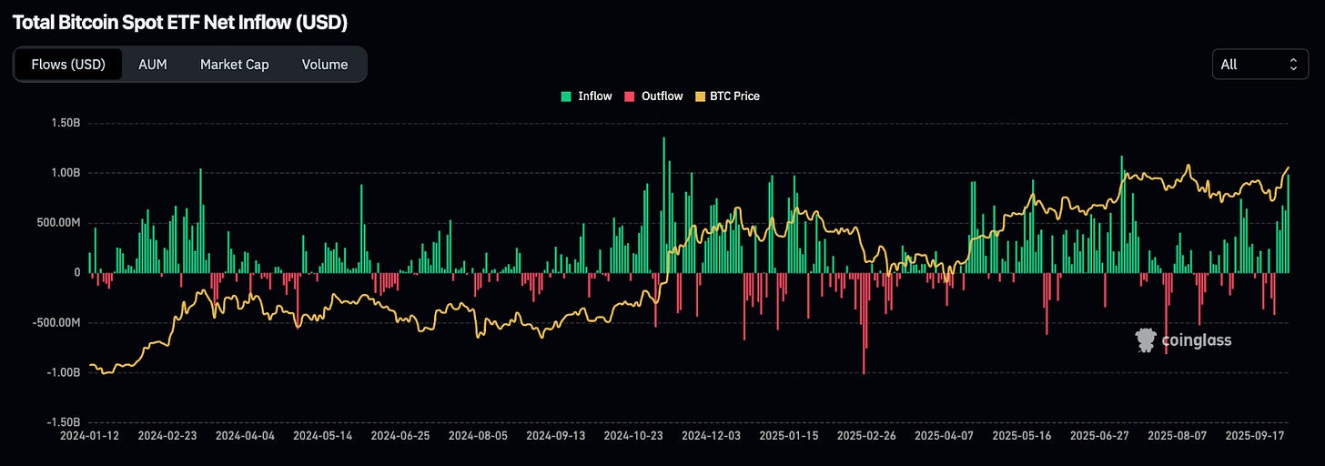 ETF inflows hit $3.2B — the second-highest on record — while Coinbase’s premium flipped positive, signaling large buyers are stepping in.