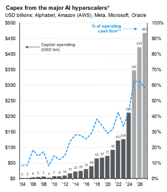 The top five hyperscalers are set to pour $1.2T into AI infrastructure from 2025–2027 — more than double the last three years combined.